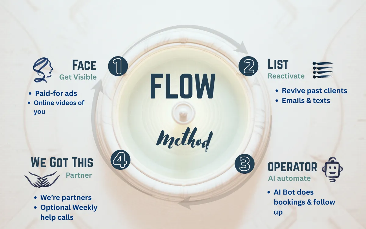 Yes, and you should. Once you're flowing, the system shifts to maintenance mode. Your AI keeps capturing leads for your waitlist, your visibility keeps building, your reactivation keeps past clients engaged. The goal is sustainably full, not one-time full.